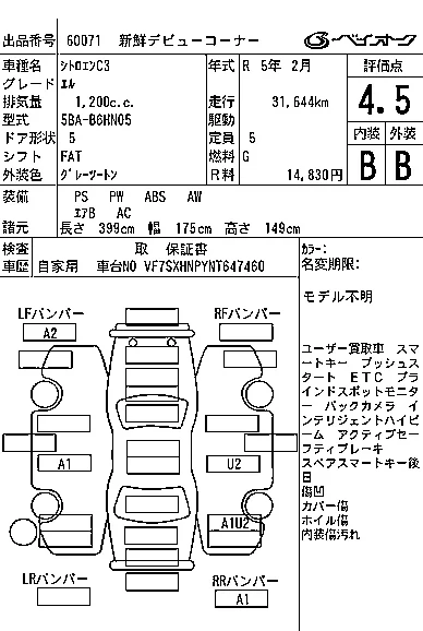 Аукцион BAYAUC Дата аукциона 04.03.2026 Год2023 Номер кузоваB6HN05 Объем1200 сс Трансмиссия FAT Привод Автомат Пробег 32 000 км Цветсерый двухцветный Оценка4.5