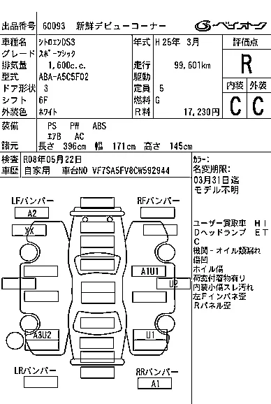 Аукцион BAYAUC Дата аукциона 04.03.2026 Год2013 Номер кузоваA5C5F02 Объем1600 сс Трансмиссия 6F Привод Автомат Пробег 100 000 км Цветбелый ОценкаR