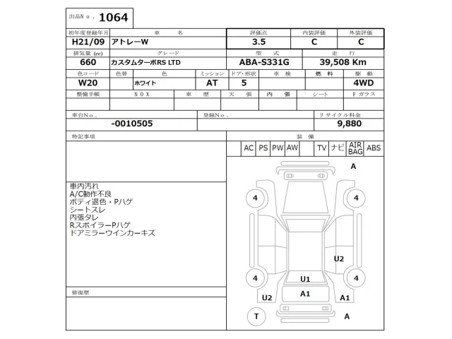 Аукцион NISSAN Osaka Дата аукциона 12.01.2026 Год2009 Номер кузоваS331G Объем660 сс Трансмиссия Автомат Привод FULLTIME4WD Пробег 39 000 км Цветбелый Оценка3.5