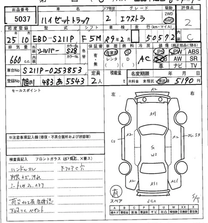 Аукцион SAA Sapporo Дата аукциона 07.04.2026 Год2013 Тип кузоваБортовой грузовик Номер кузоваS211P Объем660 сс Трансмиссия MT Привод PARTTIME4WD Пробег 51 000 км Цветсеребро Оценка2