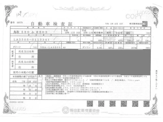 Аукцион ORIX Kobe Nyusatsu Дата аукциона 02.12.2025 Год2018 Тип кузоваХэтчбек Номер кузоваLA350S Объем660 сс Трансмиссия Автомат Пробег 230 000 км Цветбелый Оценка3.5