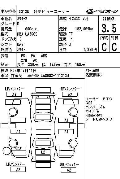 Аукцион BAYAUC Дата аукциона 14.01.2026 Год2012 Тип кузоваХэтчбек Номер кузоваLA300S Объем660 сс Трансмиссия DAT Пробег 183 000 км Цветбелый Оценка3.5