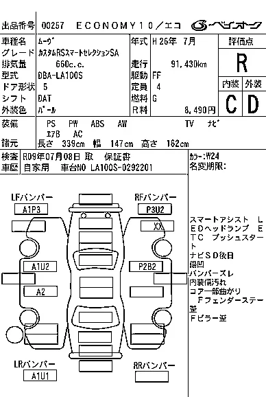 Аукцион BAYAUC Дата аукциона 25.03.2026 Год2014 Тип кузоваХэтчбек Номер кузоваLA100S Объем660 сс Трансмиссия DAT Привод Автомат Пробег 92 000 км Цветбелый ОценкаR
