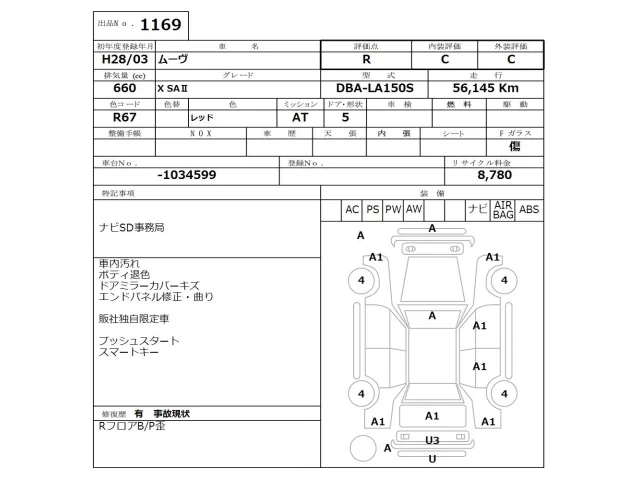 Аукцион NISSAN Osaka Дата аукциона 06.04.2026 Год2016 Тип кузоваХэтчбек Номер кузоваLA150S Объем660 сс Трансмиссия Автомат Привод Автомат Пробег 56 000 км Цветкрасный ОценкаR