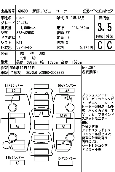 Аукцион BAYAUC Дата аукциона 25.03.2026 Год2019 Тип кузоваДжип/SUV Номер кузоваA200S Объем1000 сс Трансмиссия FAT Привод Автомат Пробег 118 000 км Цветкрасный Белый Оценка3.5