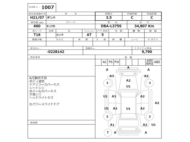 Аукцион NISSAN Osaka Дата аукциона 17.11.2025 Год2009 Тип кузоваХэтчбек Номер кузоваL375S Объем660 сс Трансмиссия Автомат Привод Автомат Пробег 34 000 км Цветрозовый Оценка3.5