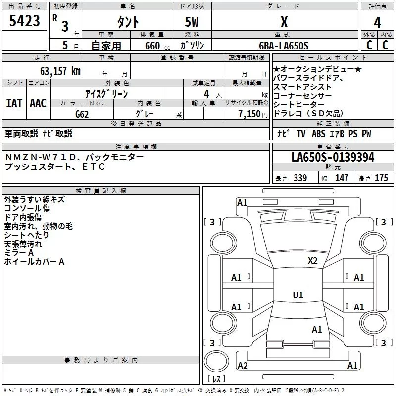 Аукцион TAA Kinki Дата аукциона 27.01.2026 Год2021 Тип кузоваХэтчбек Номер кузоваLA650S Объем660 сс Трансмиссия IAT Привод Автомат Пробег 63 000 км Оценка4