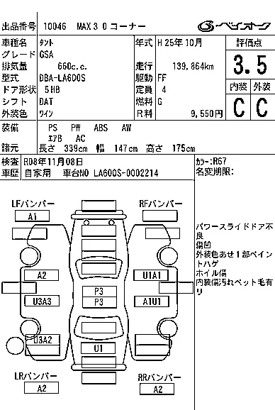 Аукцион BAYAUC Дата аукциона 18.02.2026 Год2013 Тип кузоваХэтчбек Номер кузоваLA600S Объем660 сс Трансмиссия DAT Привод Автомат Пробег 140 000 км Цветвино Оценка3.5