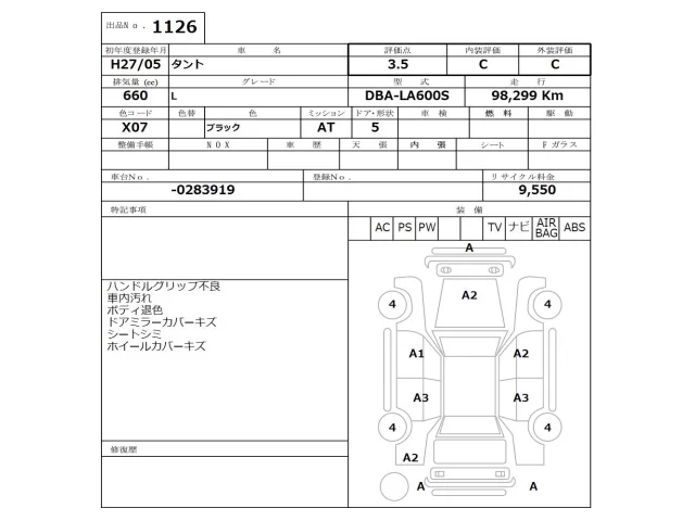 Аукцион NISSAN Osaka Дата аукциона 23.02.2026 Год2015 Тип кузоваХэтчбек Номер кузоваLA600S Объем660 сс Трансмиссия Автомат Привод Автомат Пробег 98 000 км Цветчерный Оценка3.5