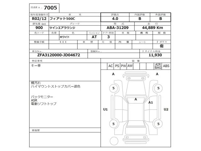 Fiat 500C Лот 7005, торги от 19.01.2026