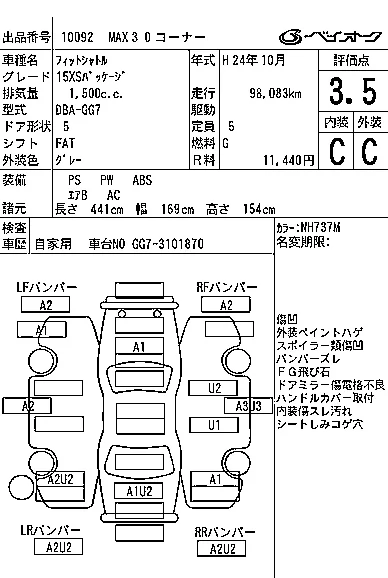 Аукцион BAYAUC Дата аукциона 01.04.2026 Год2012 Тип кузоваУниверсал Номер кузоваGG7 Объем1500 сс Трансмиссия FAT Привод Автомат Пробег 98 000 км Цветсерый Оценка3.5