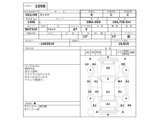 Аукцион NISSAN Osaka Дата аукциона 13.10.2025 Год2010 Тип кузоваХэтчбек Номер кузоваGE6 Объем1300 сс Трансмиссия Автомат Привод Автомат Пробег 104 000 км Цветчерный ОценкаR