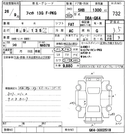 Аукцион HERO Дата аукциона 14.01.2026 Год2014 Тип кузоваХэтчбек Номер кузоваGK4 Объем1300 сс Трансмиссия FA Привод FULLTIME4WD Пробег 90 000 км Цветбелый Оценка3.5