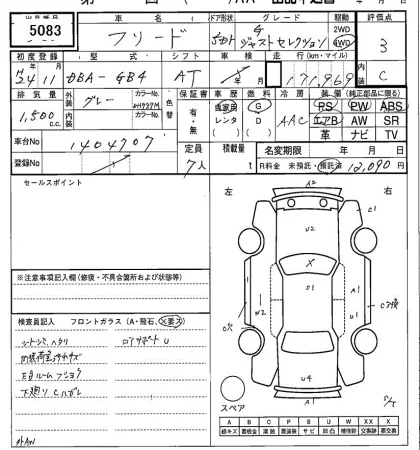 Аукцион SAA Sapporo Дата аукциона 25.11.2025 Год2012 Тип кузоваМинивэн Номер кузоваGB4 Объем1500 сс Трансмиссия Автомат Привод FULLTIME4WD Пробег 172 000 км Цветиндиго Оценка3