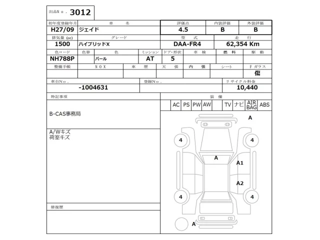 Honda JADE Лот 3012, торги от 23.02.2026