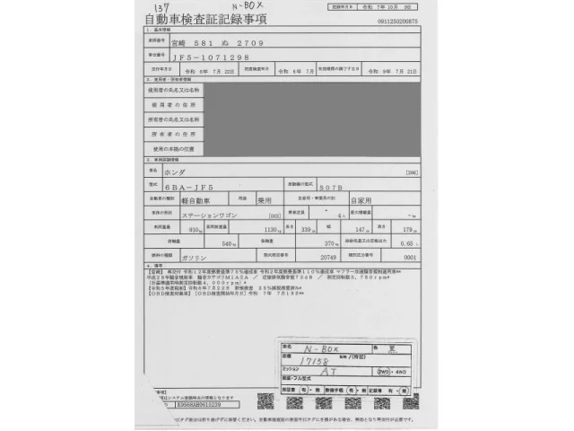 Honda N BOX Лот 137, торги от 04.11.2025