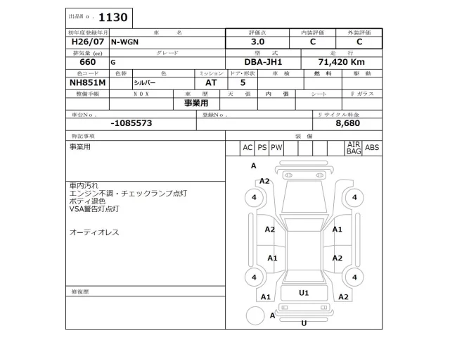 Honda N WGN Лот 1130, торги от 26.01.2026