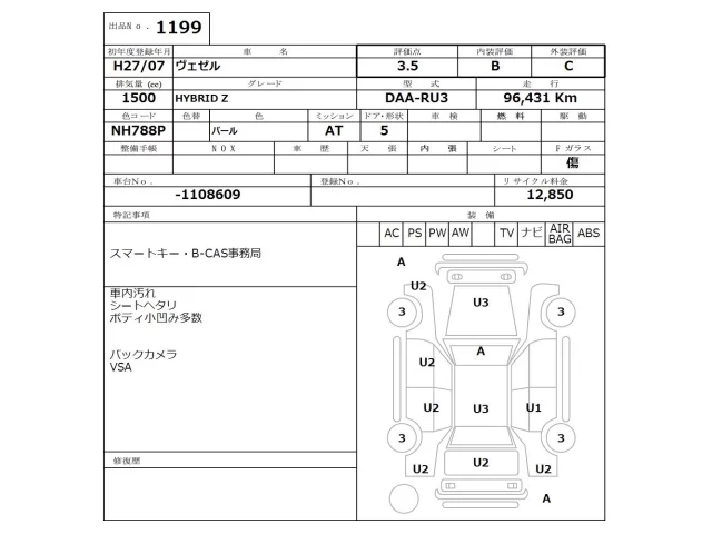 Honda VEZEL Лот 1199, торги от 23.03.2026