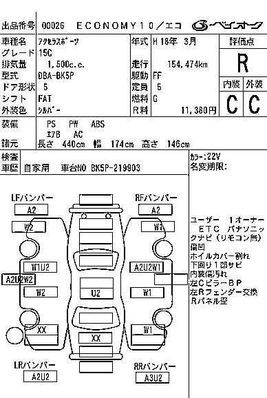 Аукцион BAYAUC Дата аукциона 21.01.2026 Год2006 Тип кузоваХэтчбек Номер кузоваBK5P Объем1500 сс Трансмиссия FAT Привод Автомат Пробег 155 000 км Цветсеребро ОценкаR
