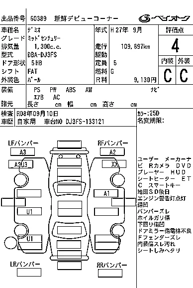 Аукцион BAYAUC Дата аукциона 26.11.2025 Год2015 Тип кузоваХэтчбек Номер кузоваDJ3FS Объем1300 сс Трансмиссия FAT Привод Автомат Пробег 110 000 км Цветбелый Оценка4