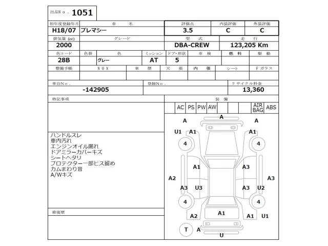 Mazda PREMACY Лот 1051, торги от 19.01.2026