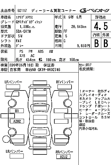 Аукцион BAYAUC Дата аукциона 08.04.2026 Год2024 Тип кузоваДжип/SUV Номер кузоваGK1W Объем1500 сс Трансмиссия FAT Привод FF,FULLTIME4WD Пробег 21 000 км Цветсерый Оценка4.5