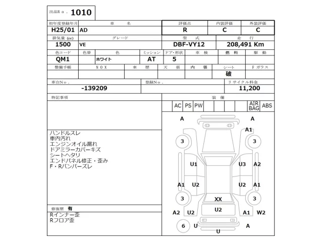 Аукцион NISSAN Osaka Дата аукциона 16.03.2026 Год2013 Тип кузоваУниверсал Номер кузоваVY12 Объем1500 сс Трансмиссия Автомат Пробег 208 000 км Цветбелый ОценкаR
