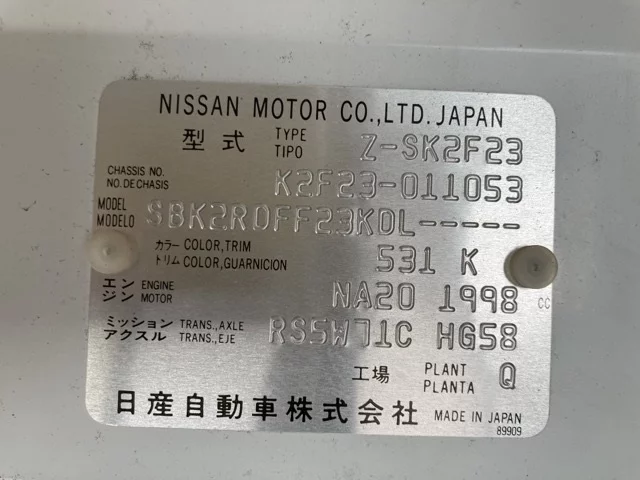 Номер кузоваSK2F23カイ
