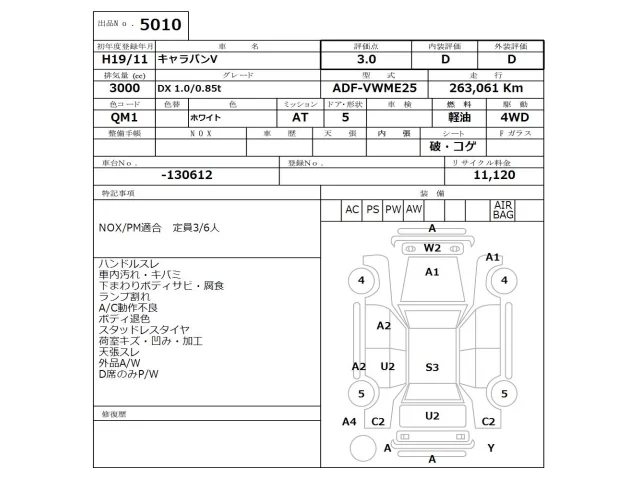 Nissan CARAVAN VAN Лот 5010, торги от 17.11.2025