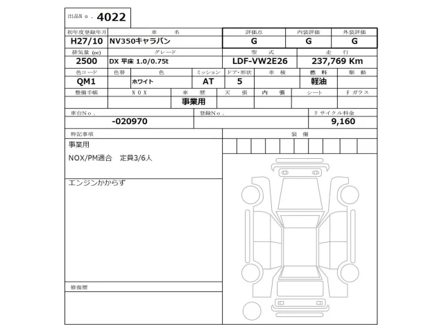 Nissan CARAVAN VAN Лот 4022, торги от 30.03.2026