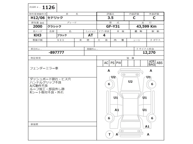 Nissan CEDRIC Лот 1126, торги от 15.12.2025