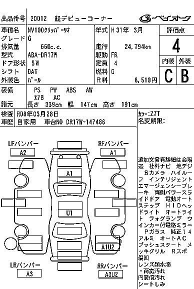 Аукцион BAYAUC Дата аукциона 21.01.2026 Год2019 Номер кузоваDR17W Объем660 сс Трансмиссия DAT Пробег 25 000 км Цветбелый Оценка4