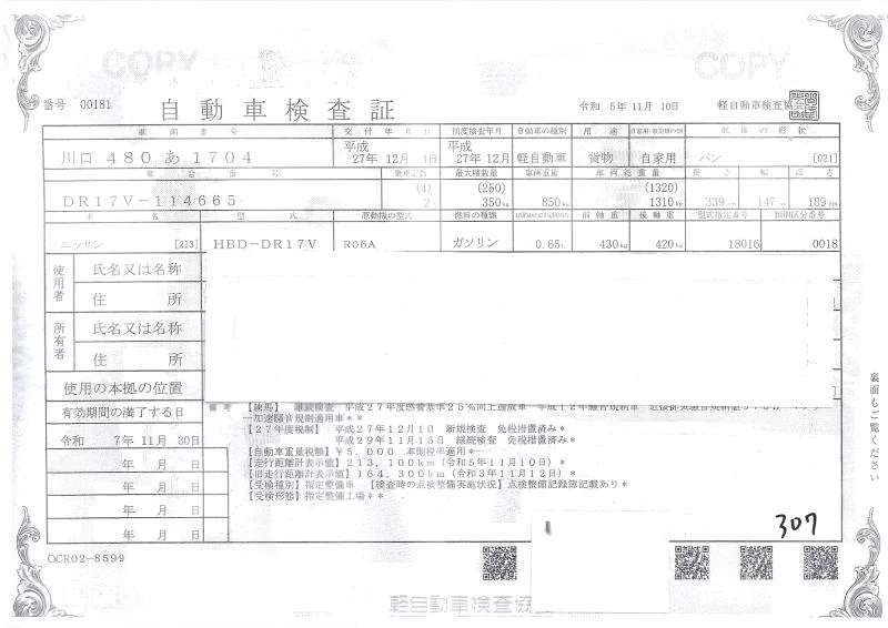 Аукцион NPS Tochigi Nyusatsu Дата аукциона 13.01.2026 Год2015 Номер кузоваDR17V Объем660 сс Трансмиссия DAT Привод FR,PARTTIME4WD Пробег 245 000 км Цветсеребро Оценка3.5