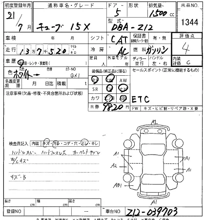 Nissan CUBE Лот 1344, торги от 07.01.2026