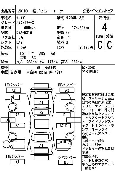 Аукцион BAYAUC Дата аукциона 07.01.2026 Год2017 Тип кузоваХэтчбек Номер кузоваB21W Объем660 сс Трансмиссия DAT Привод FF,FULLTIME4WD Пробег 125 000 км Цветчерный Оценка4