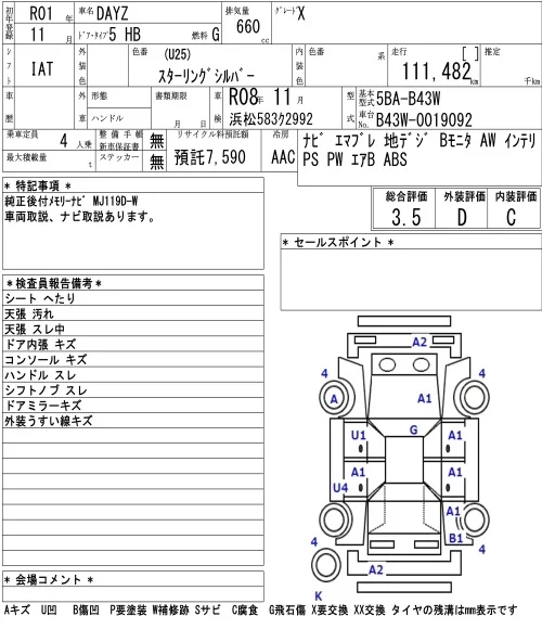Аукцион NAA Tokyo Дата аукциона 06.02.2026 Год2019 Тип кузоваХэтчбек Номер кузоваB43W Объем660 сс Трансмиссия IAT Привод Автомат Пробег 111 000 км Оценка3.5