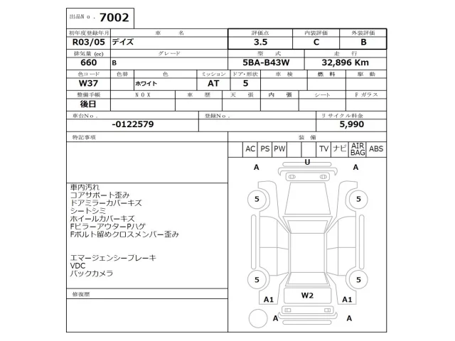 Аукцион NISSAN Osaka Дата аукциона 30.03.2026 Год2021 Тип кузоваХэтчбек Номер кузоваB43W Объем660 сс Трансмиссия Автомат Привод Автомат Пробег 32 000 км Цветбелый Оценка3.5