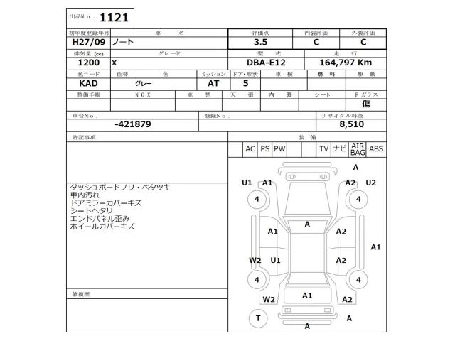 Аукцион NISSAN Osaka Дата аукциона 17.11.2025 Год2015 Тип кузоваХэтчбек Номер кузоваE12 Объем1200 сс Трансмиссия Автомат Привод Автомат Пробег 164 000 км Цветсерый Оценка3.5