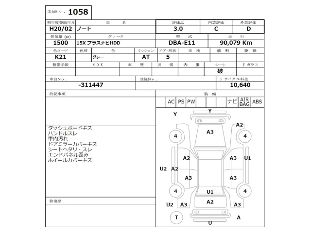 Аукцион NISSAN Osaka Дата аукциона 23.02.2026 Год2008 Тип кузоваХэтчбек Номер кузоваE11 Объем1500 сс Трансмиссия Автомат Привод Автомат Пробег 90 000 км Цветсерый Оценка3