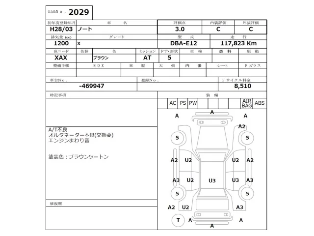 Аукцион NISSAN Osaka Дата аукциона 16.03.2026 Год2016 Тип кузоваХэтчбек Номер кузоваE12 Объем1200 сс Трансмиссия Автомат Привод Автомат Пробег 117 000 км Цветкоричневый Оценка3