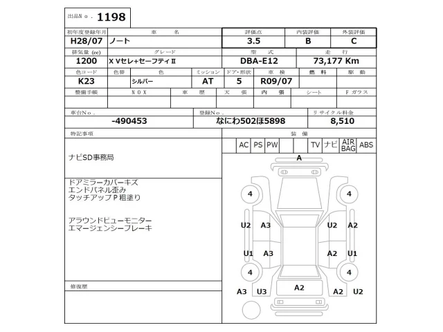 Аукцион NISSAN Osaka Дата аукциона 23.03.2026 Год2016 Тип кузоваХэтчбек Номер кузоваE12 Объем1200 сс Трансмиссия Автомат Привод Автомат Пробег 73 000 км Цветсеребро Оценка3.5
