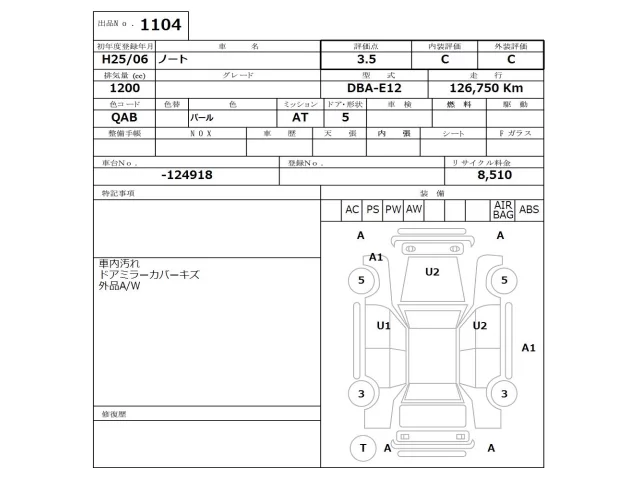Аукцион NISSAN Osaka Дата аукциона 30.03.2026 Год2013 Тип кузоваХэтчбек Номер кузоваE12 Объем1200 сс Трансмиссия Автомат Привод Автомат Пробег 126 000 км Цветбелый Оценка3.5
