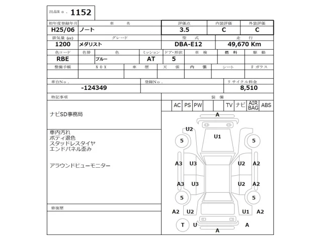 Аукцион NISSAN Osaka Дата аукциона 06.04.2026 Год2013 Тип кузоваХэтчбек Номер кузоваE12 Объем1200 сс Трансмиссия Автомат Привод Автомат Пробег 49 000 км Цветсиний Оценка3.5