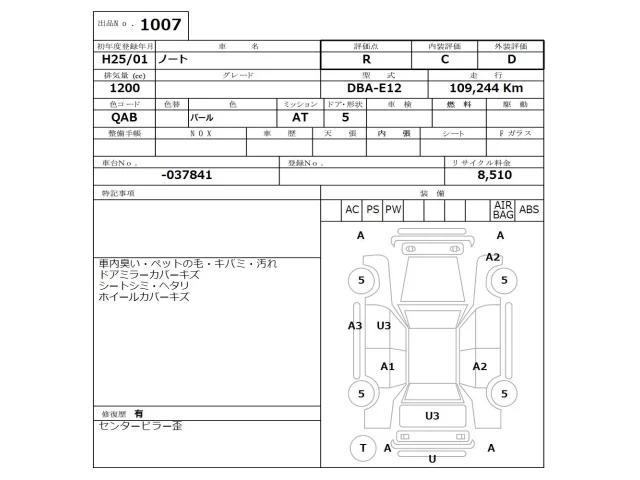Аукцион NISSAN Osaka Дата аукциона 06.04.2026 Год2013 Тип кузоваХэтчбек Номер кузоваE12 Объем1200 сс Трансмиссия Автомат Привод Автомат Пробег 109 000 км Цветбелый ОценкаR