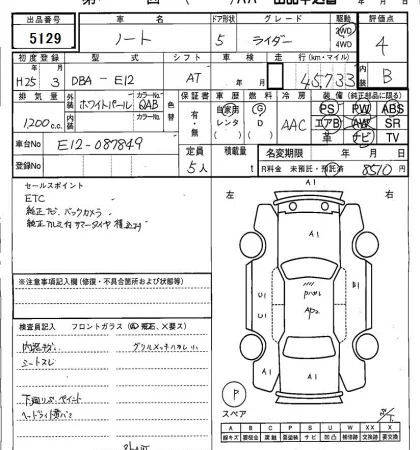 Аукцион SAA Sapporo Дата аукциона 07.04.2026 Год2013 Тип кузоваХэтчбек Номер кузоваE12 Объем1200 сс Трансмиссия Автомат Привод Автомат Пробег 46 000 км Цветжемчужно-белый Оценка4