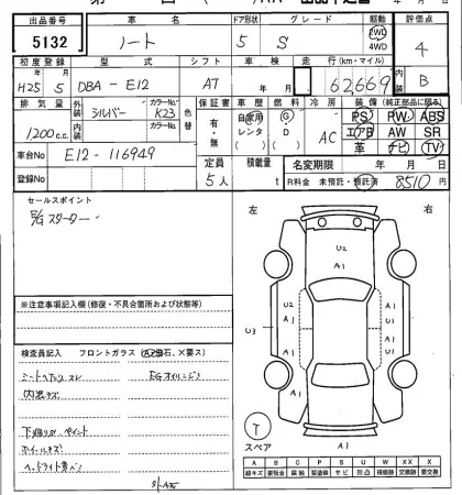 Аукцион SAA Sapporo Дата аукциона 07.04.2026 Год2013 Тип кузоваХэтчбек Номер кузоваE12 Объем1200 сс Трансмиссия Автомат Привод Автомат Пробег 63 000 км Цветсеребро Оценка4