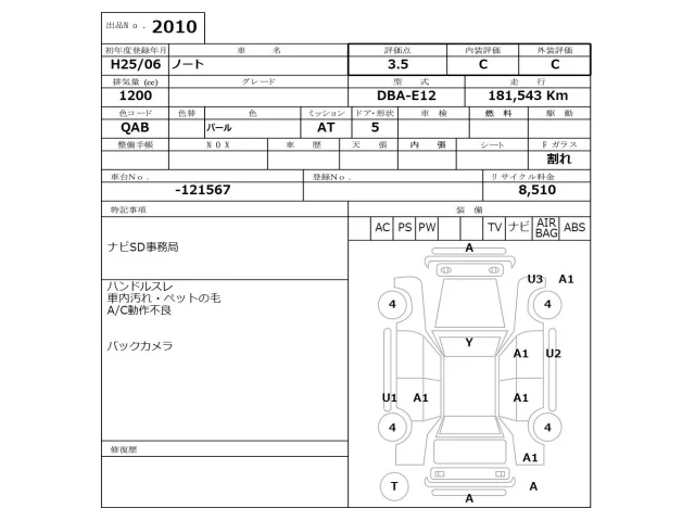 Аукцион NISSAN Osaka Дата аукциона 13.04.2026 Год2013 Тип кузоваХэтчбек Номер кузоваE12 Объем1200 сс Трансмиссия Автомат Привод Автомат Пробег 181 000 км Цветбелый Оценка3.5