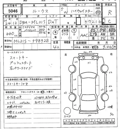 Аукцион SAA Sapporo Дата аукциона 24.02.2026 Год2012 Тип кузоваХэтчбек Номер кузоваML21S Объем660 сс Трансмиссия Автомат Привод FF,FULLTIME4WD Пробег 57 000 км Цветфиолетовый ОценкаR