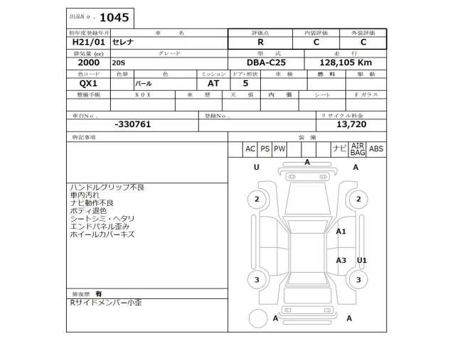 Nissan SERENA Лот 1045, торги от 12.01.2026