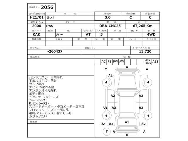Nissan SERENA Лот 2056, торги от 12.01.2026
